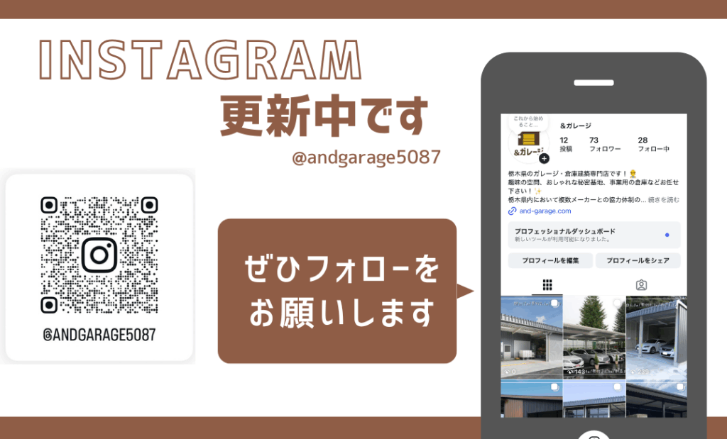 理想のガレージ計画のネタ帳として、ぜひ当社のインスタをご活用ください。